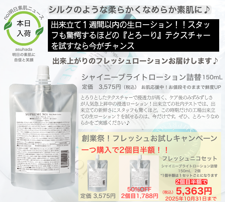 2025年10月29日に新鮮なローション詰替が入荷いたしました。フレッシュ出来立てのとろーり生ローション1週間以内の出来立てを"まるで生"状態でお届けさせていただきます。スタッフたちが驚愕した出来立てをぜひ、ご実感ください♪